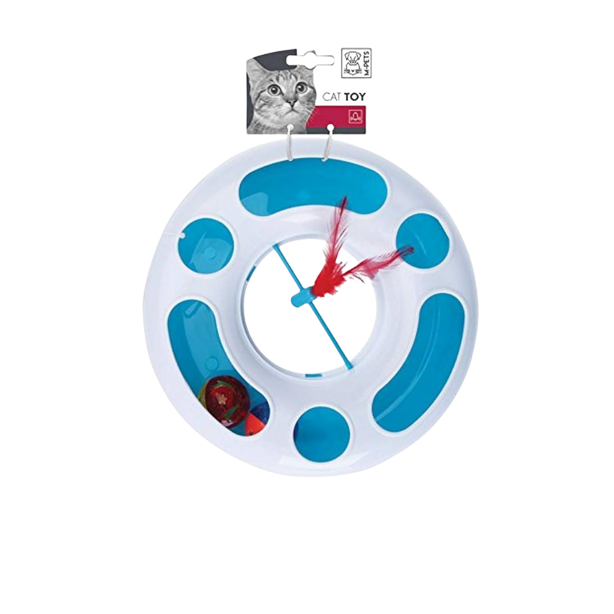Juguete interactivo diseñado para mantener entretenidos a los gatos de todas las edades y tamaños. Con su forma de disco y su movimiento giratorio, estimula el instinto de caza del felino.