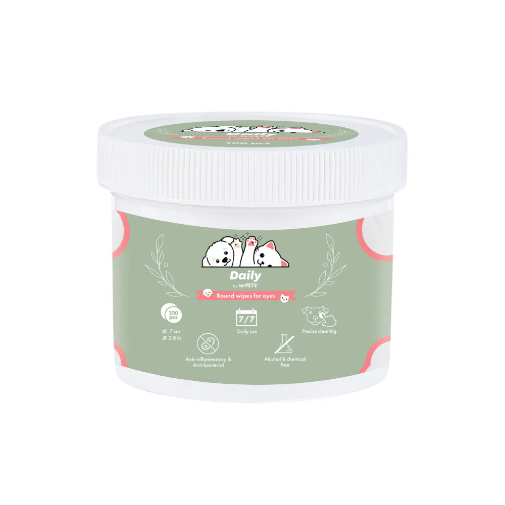 Toallitas redondas para ojos diseñadas para limpiar suavemente el área ocular de tu mascota. Con un tamaño adecuado y una textura suave, estas toallitas son ideales para eliminar de manera efectiva la suciedad y las legañas.